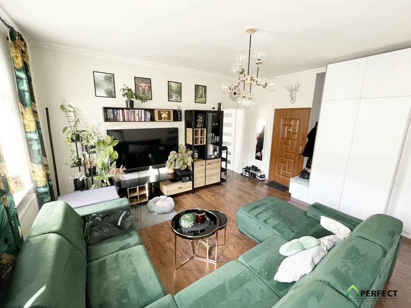 - przestronny salon z dużą wnęką kuchenną