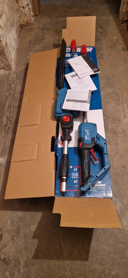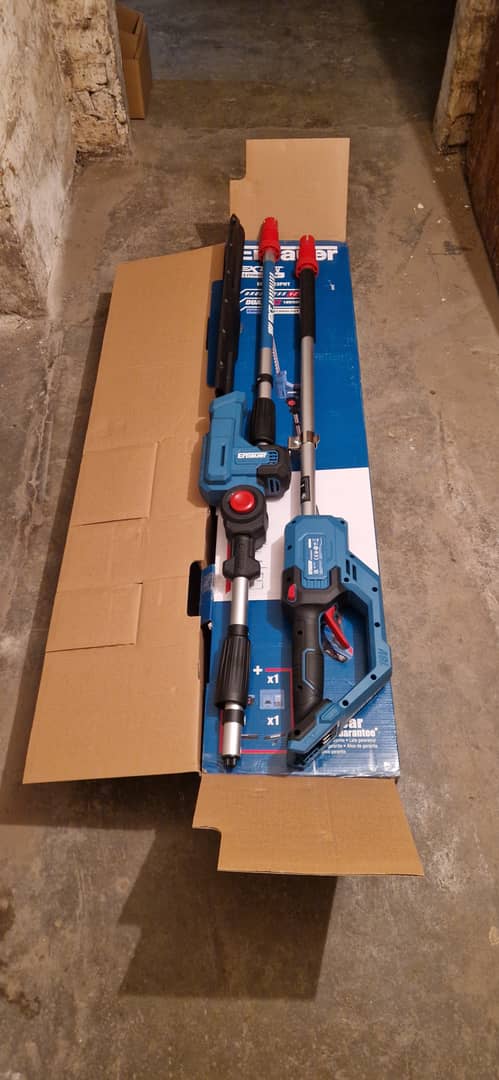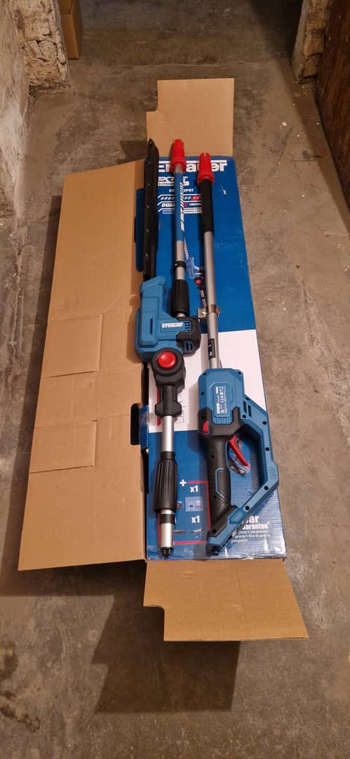 Nożyce akumulatorowe do żywopłotu. Stan nowy. Firma Erbauer. Brak akumulatora I baterii. Wejście UK.