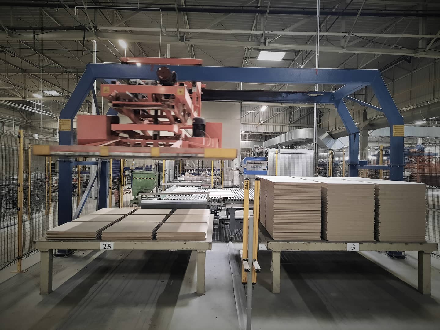Przygotowanie (ręczne) palet z gotowym produktem w przypadku, gdy z powodu nietypowych formatów lub innych przyczyn nie jest możliwa automatyczna paletyzacja. Następnie transport przygotowanych palet na linię wykończeniową.