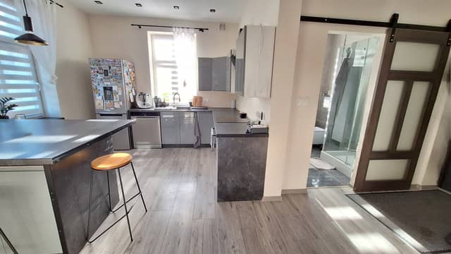 – kuchni z wyspą, świetnie wyposażonej w nowoczesne sprzęty: lodówka, płyta, zmywarka…