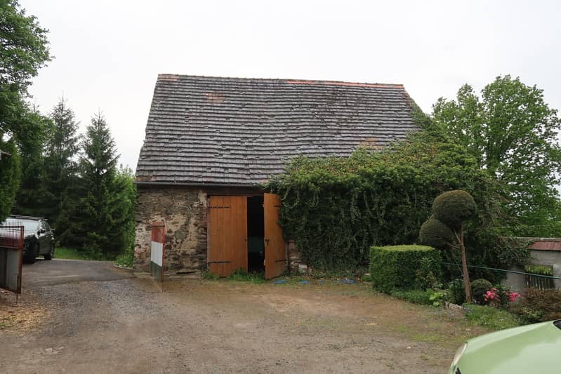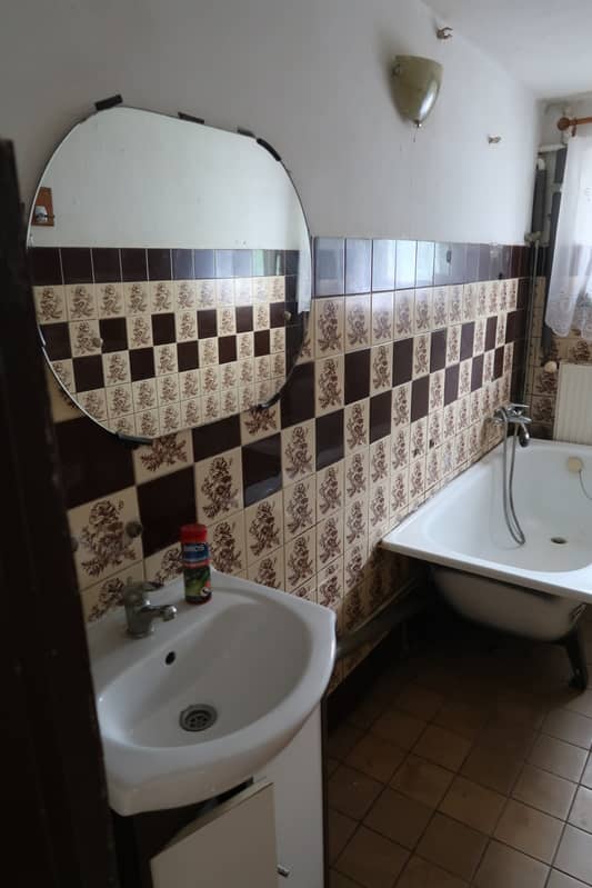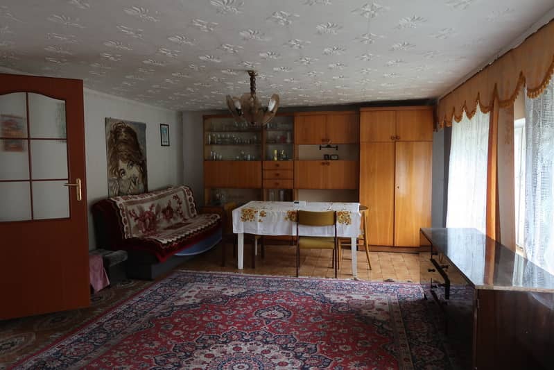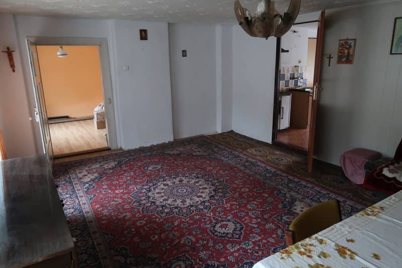 Połowa domu mieszkalnego- podział w pionie pow. 112 m2 , 3-pokoje, kuchnia – z kuchenką typu Westfalka, łazienka , korytarz, strych – możliwość zamieszkania i dalszej modernizacji, czy remontu. Wysokość w mieszkaniu 225 cm. W parterze pomieszczenie gospodarcze do zaadaptowania na piękny duży salon- 48,25 m2 . Mieszkanie częściowo po remoncie, wymieniono połowę okien na PCV, wymieniono połowę dachówki na betonową. Centralne ogrzewanie na ekogroszek. Dwa garaże murowane + wiata. Dodatkowo duży budynek gospodarczy – dawniej stodoła, z możliwością prowadzenia wybranej działalności lub składowania materiałów , sprzętu, przyczepy campingowej , quadów, czy Kampera. Czyste , wygodne podwórko. Przed domem mały skwer na kwiaty . Ponadto duża, osobna działka z możliwością zabudowy o pow. 1160 m2. Do posesji dojazd drogą asfaltową. Piękne , ciche położenie. Znakomita komunikacja. Widoki na góry, łąki. 320.000,-