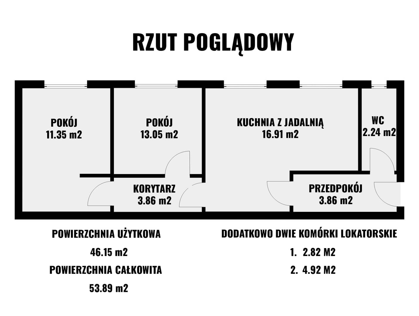 Powierzchnia całkowita: 53,89 m²