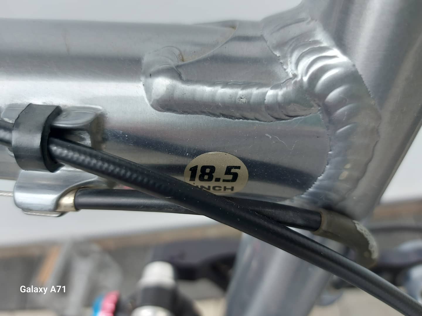 - rama aluminiowa , wytrzymała , rozmiar 18,5 cali ( 47 cm od suportu (pedał) do mocowania pod siodełkiem )