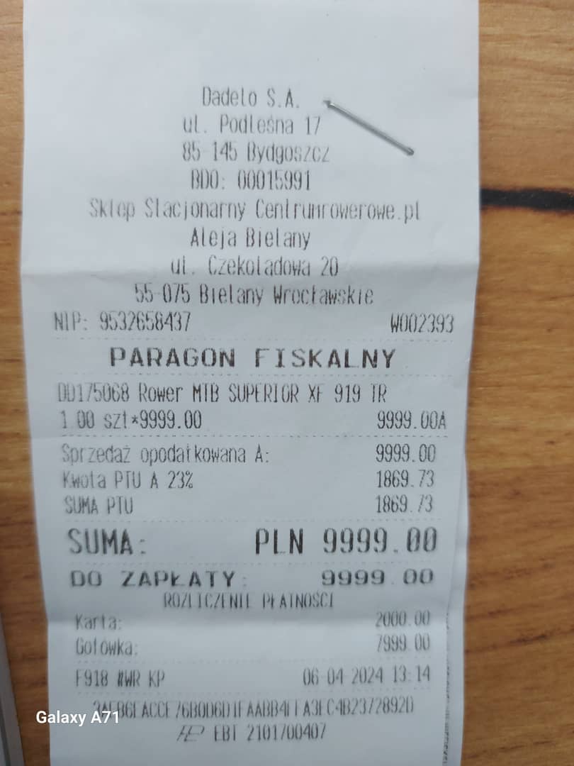 Jest w pełni sprawny , wszystko funkcjonuje jak należy . ROWER FUNKCJONUJE I WYGLĄDA NAPRAWDĘ SUPER . Posiadam do niego dowód zakupu z 04.2024 roku na kwotę 9999 zł , a więc rower jest jeszcze na GWARANCJI . Firmówka to firmówka co tu więcej pisać . Wedle producenta - rower z przeznaczeniem dla osoby w przedziale wzrostu 181-194 cm . Mogę dosłać więcej zdjęć . Cena to jedyne 4999 zł. ( istnieje możliwość wysyłki kurierem za kwotę 120 zł ) . Zerknij na inne moje aukcje. POZDRAWIAM