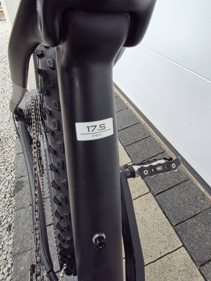 - rama CARBONOWA , wytrzymała , rozmiar 17,5 cali ( 43 cm od suportu (pedał) do mocowania pod siodełkiem )