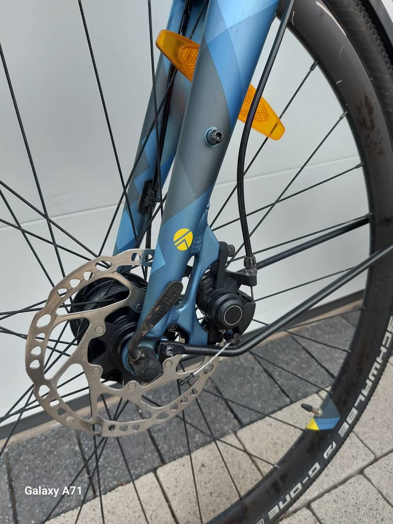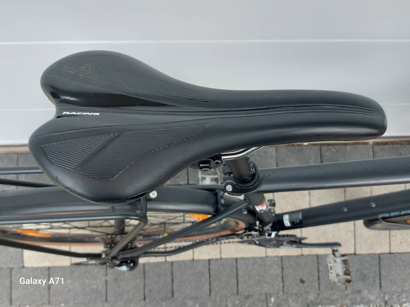 - rama aluminiowa , wytrzymała ( 57 cm od suportu (pedał) do mocowania pod siodełkiem , od mostka do mocowania pod siodełkiem 55 cm oraz od ramy górnej do podłoża 83 cm )