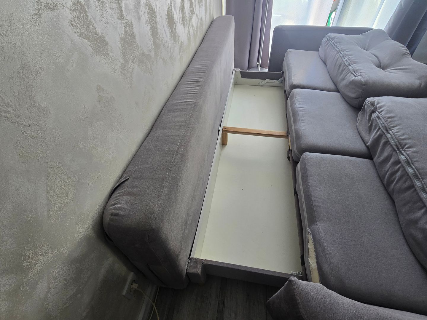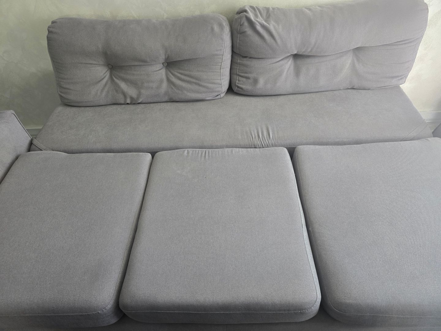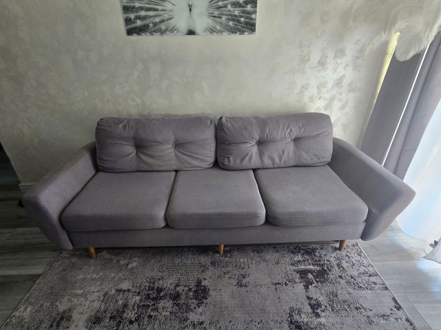 Wygodna sofa rozkładana marki Westwing w kolorze szarym. Mebel jest w stanie używanym, ale nadal w dobrym stanie. Posiada wygodne, pikowane siedzisko oraz oparcie. Sofa może posłużyć jako miejsce do siedzenia lub jako dodatkowe miejsce do spania. Praktyczne i funkcjonalne rozwiązanie do salonu lub sypialni. Wymiary: powierzchnia spania 140×230 sofa 95×230×70 wyokość siedziska 45 głebokość siedziska 75. Cena 600 zł.