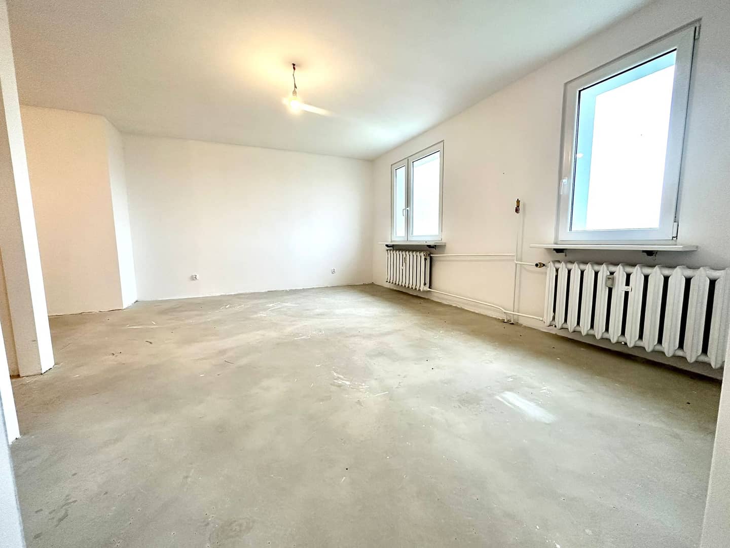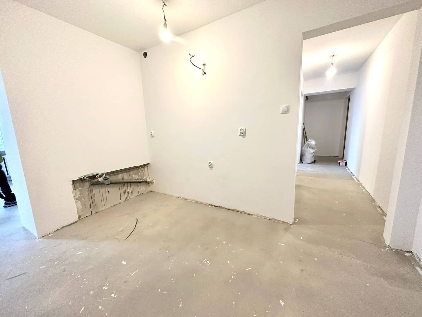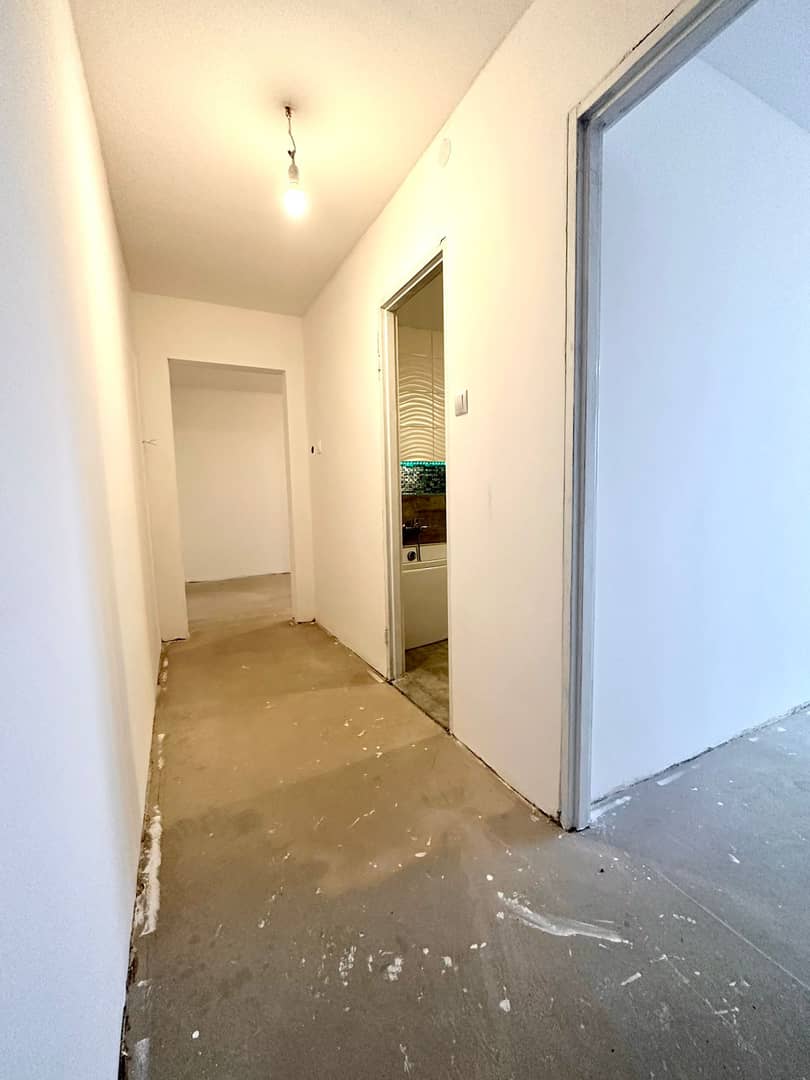 Wstawiono nowe drzwi zewnętrzne, ściany w gładzi, odmalowane na biało.