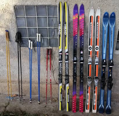 Sprzedam 4 pary nart. Wymiary od lewej: długość 197cm, 194cm, 189cm, 182cm. Narty do obejrzenia w Wolbromowie koło Gryfowa Śląskiego. Cena 600zł za 4 pary nart. Jest możliwość zakupu pojedynczych par nart za 150 zł od pary. Zapraszam do kontaktu.