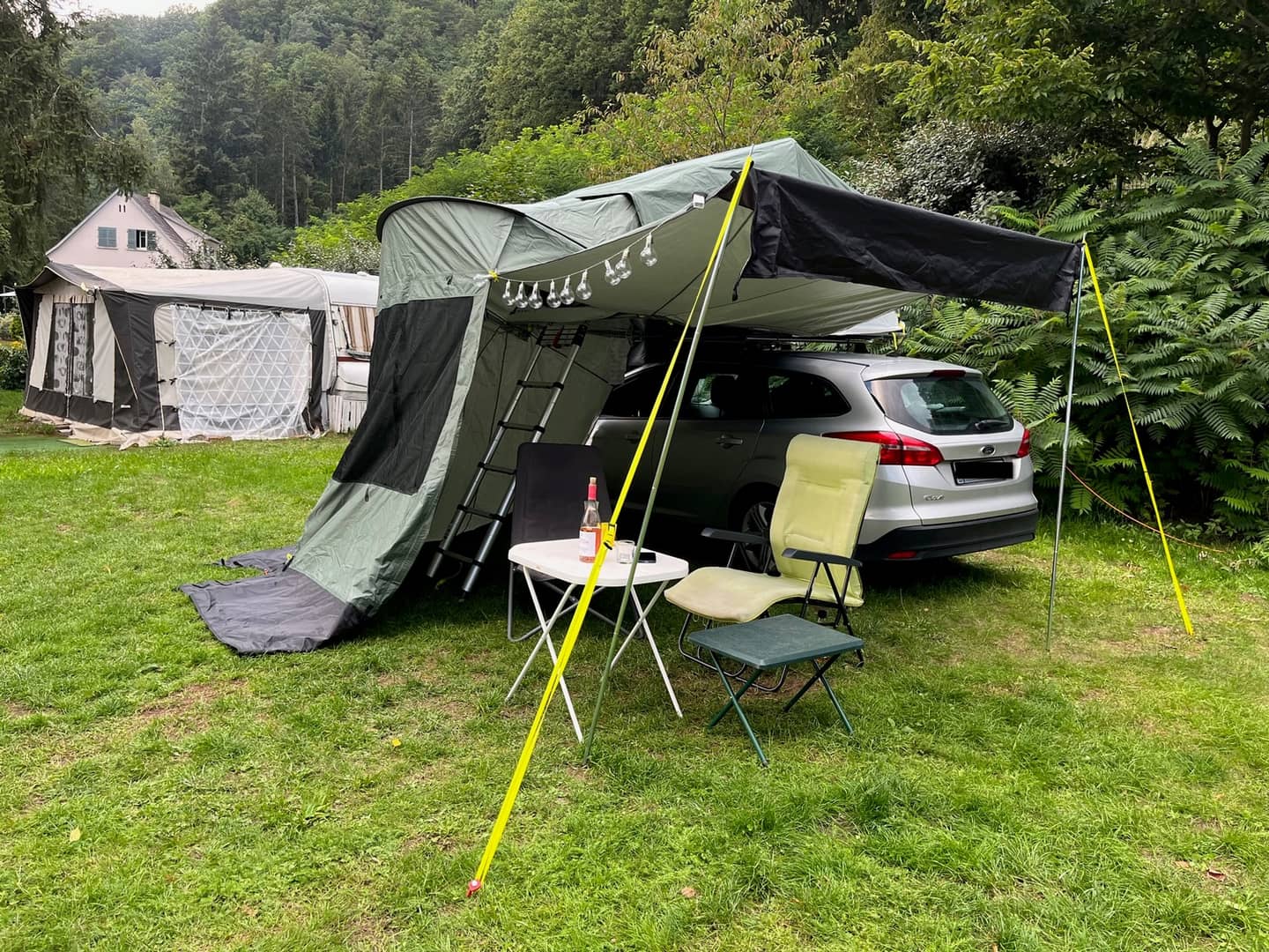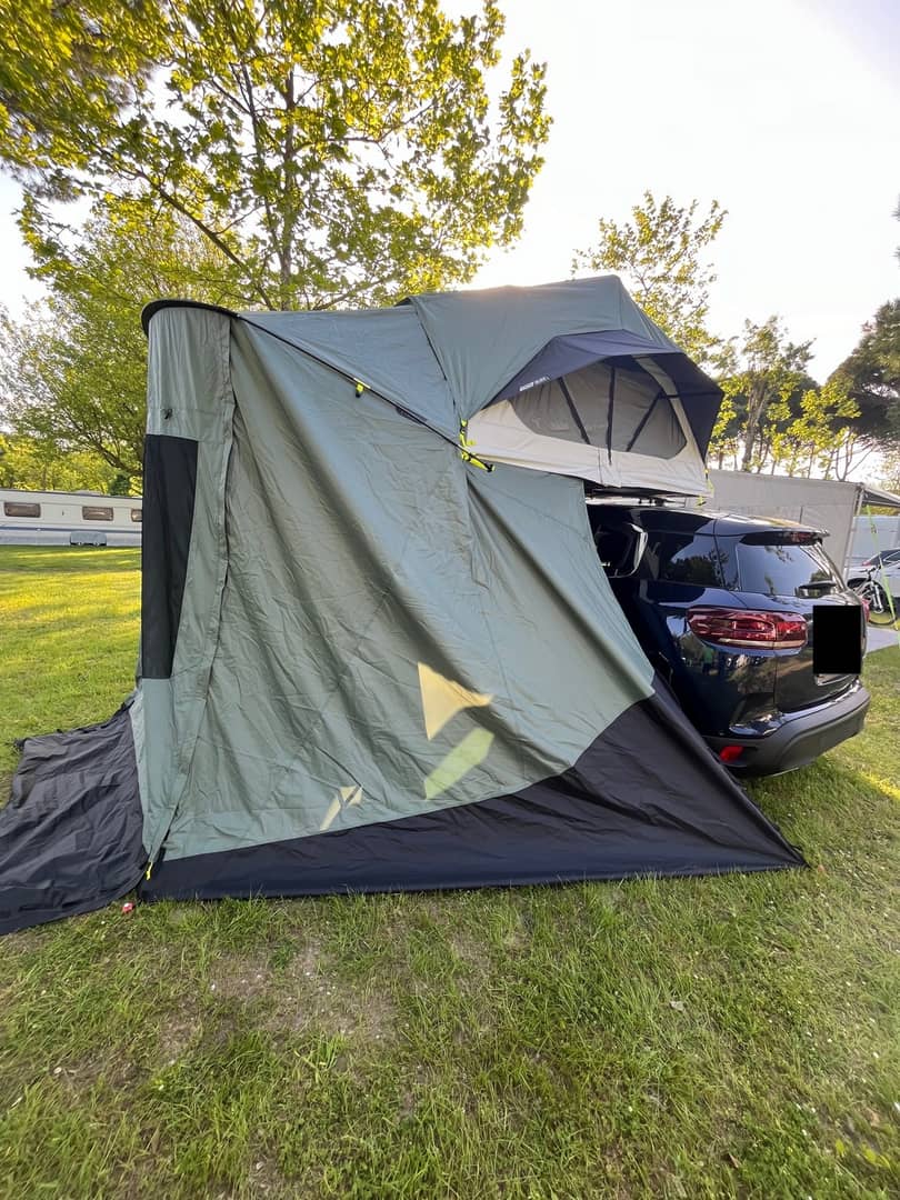 Sprzedam namiot dachowy z dedykowanym przedsionkiem firmy Quechua.
