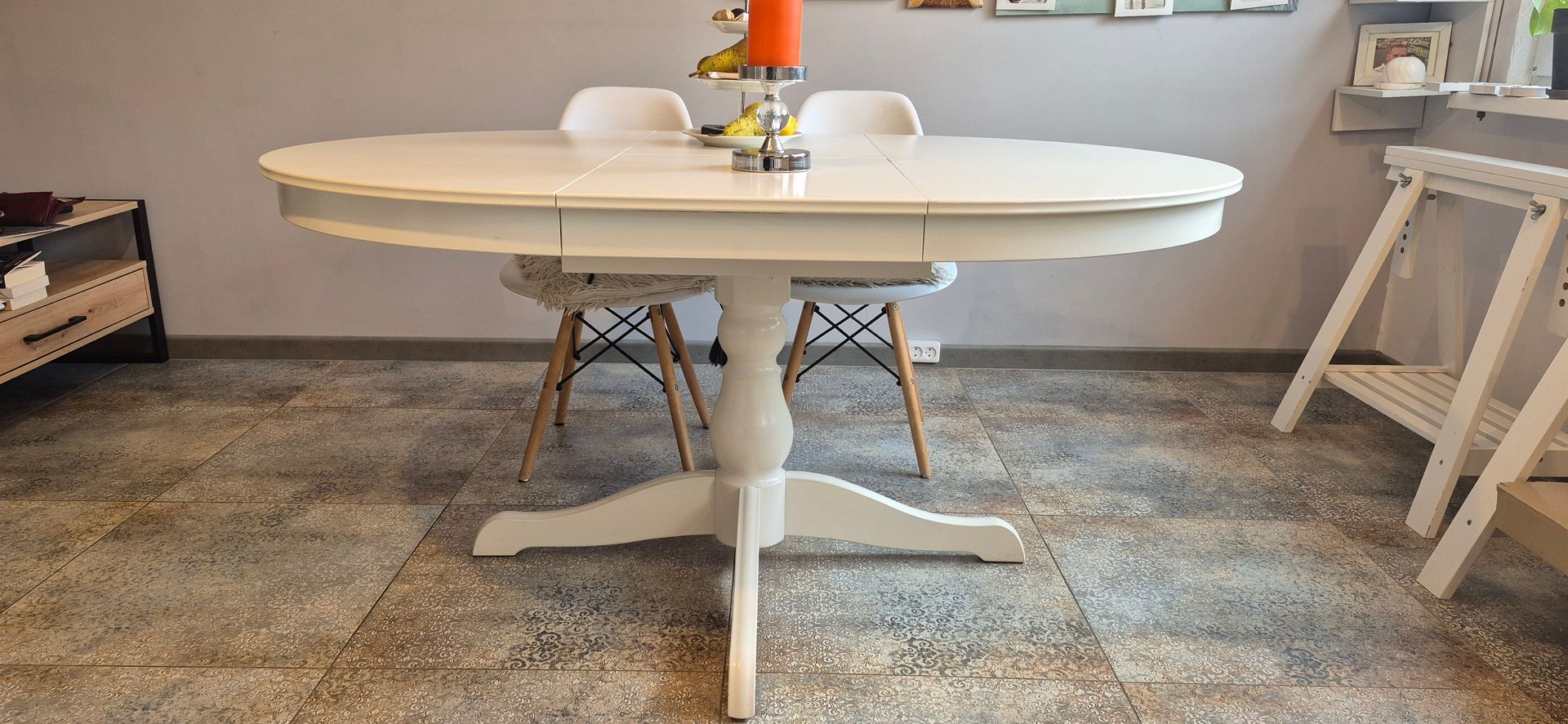 Sprzedam stół okrągły używany w stanie dobrym. Stół jest z możliwością rozkładania a na co dzień zajmuje tylko 110cm. Posiada ślady użytkowania ale nie przeszkadza w jego użytkowaniu. Transport we własnym zakresie. Stół łatwy w złożeniu.
