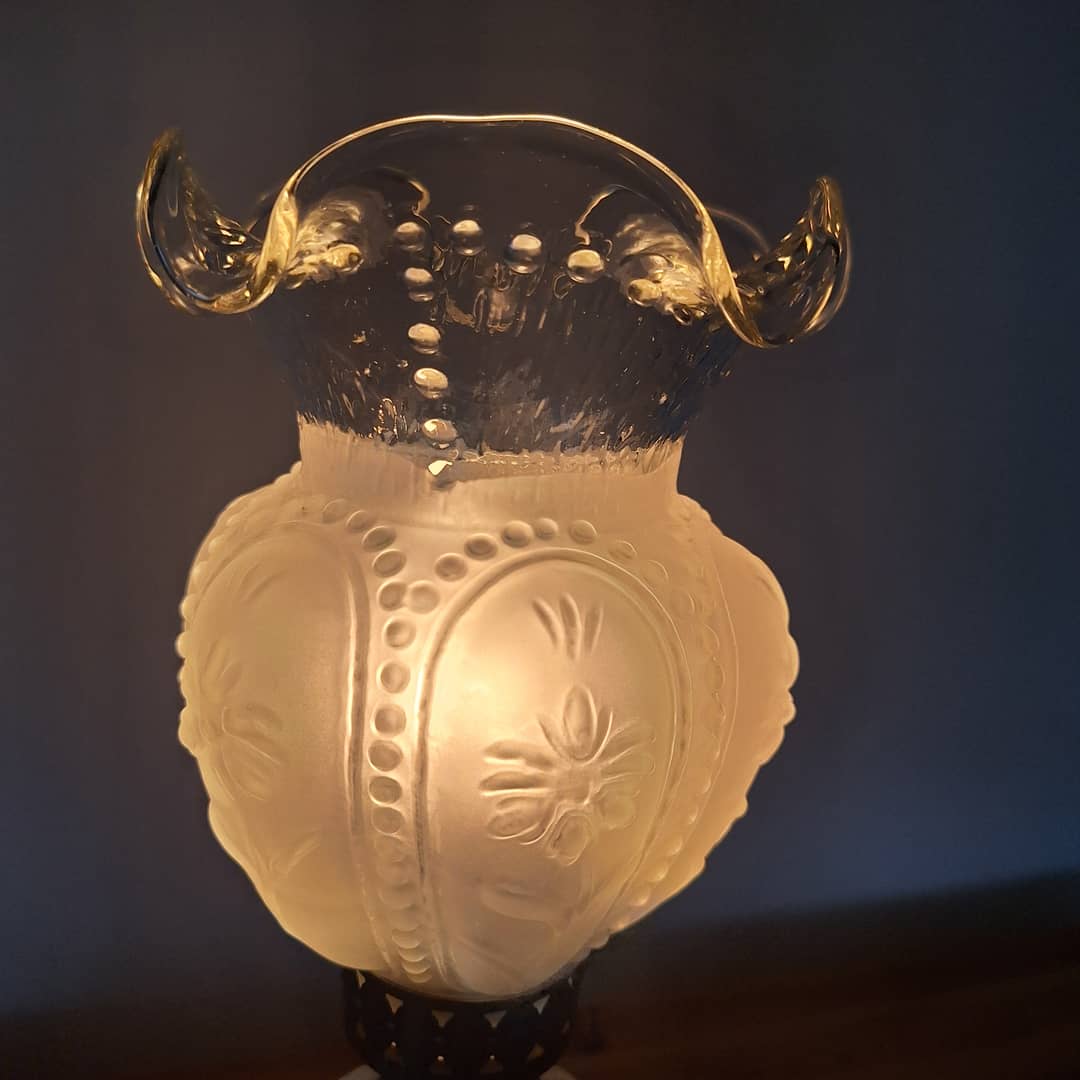 Sprzedam sprawną lampkę biurkową/stołową Massive. Widoczne pęknięcie osłony ramienia w okolicy klosza lampki poza tym nosi niewielkie ślady użytkowania. Lampka posiada regulowane ramię. Wł