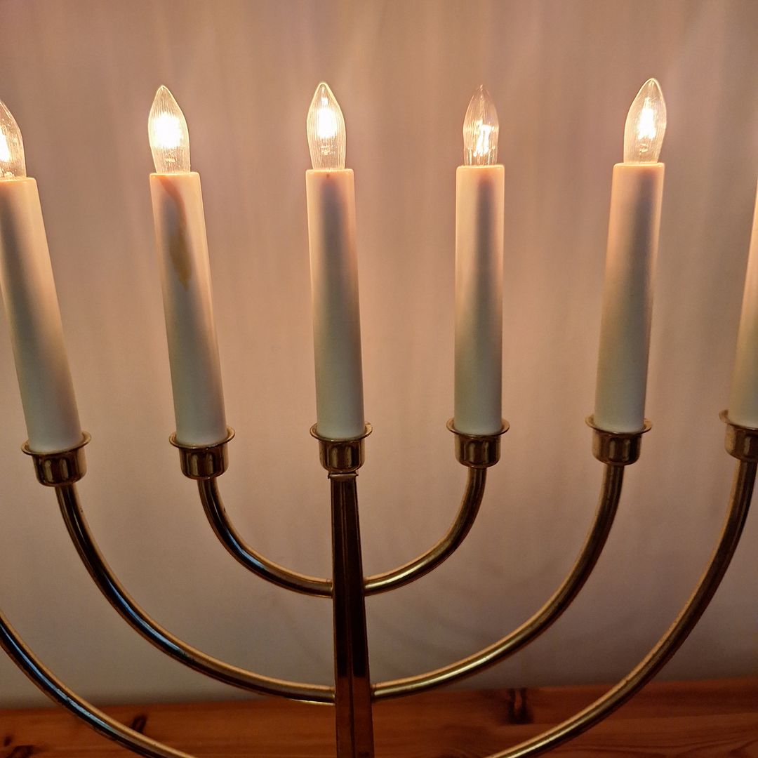 Świecznik adwentowy metalowy złoty elektryczny, wysokość 40 cm, szerokość 36 cm. Możliwy dowóz lub wysyłka. Cena 70 zł.