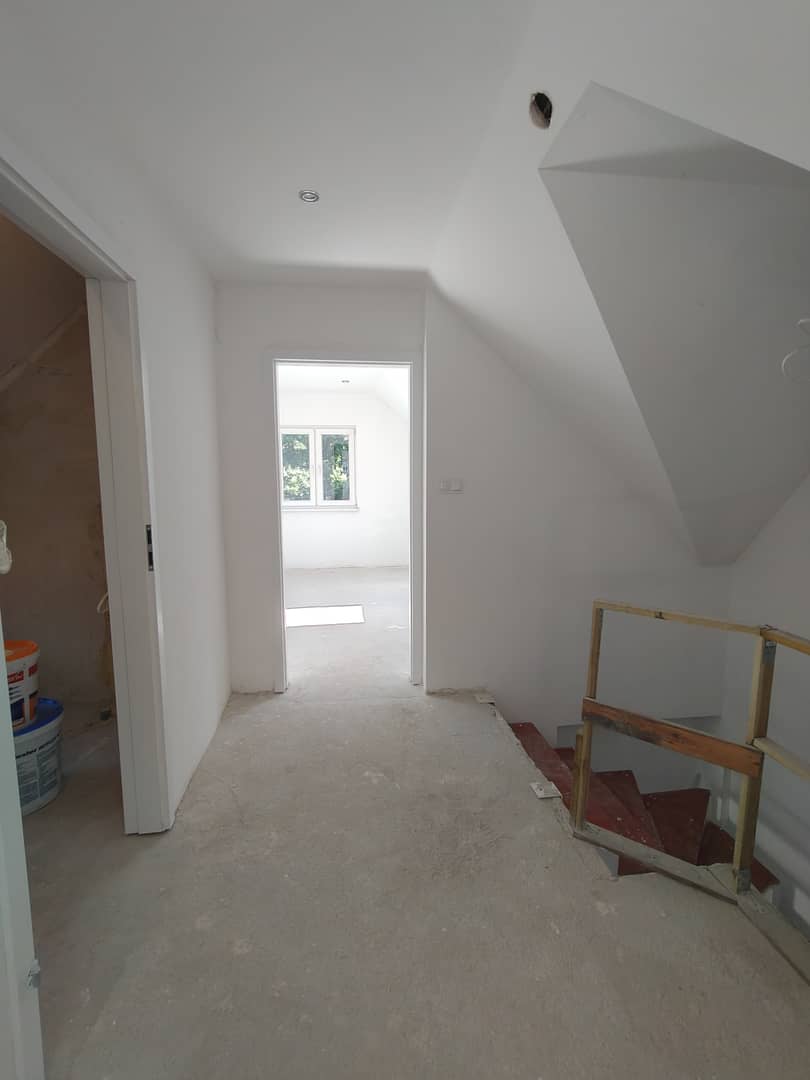 - Piętro + poddasze 133,5 m² (160 m² po podłodze, stan deweloperski rozszerzony)