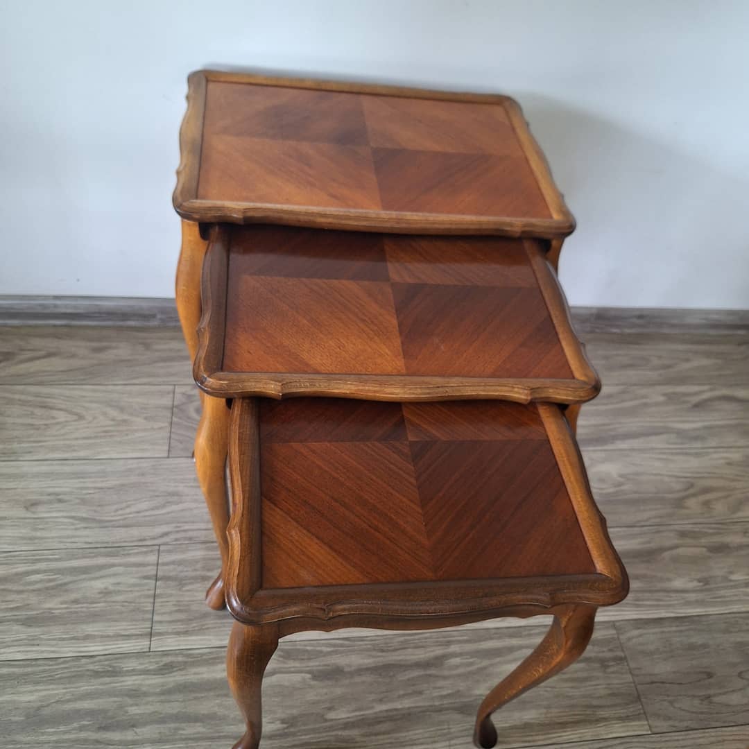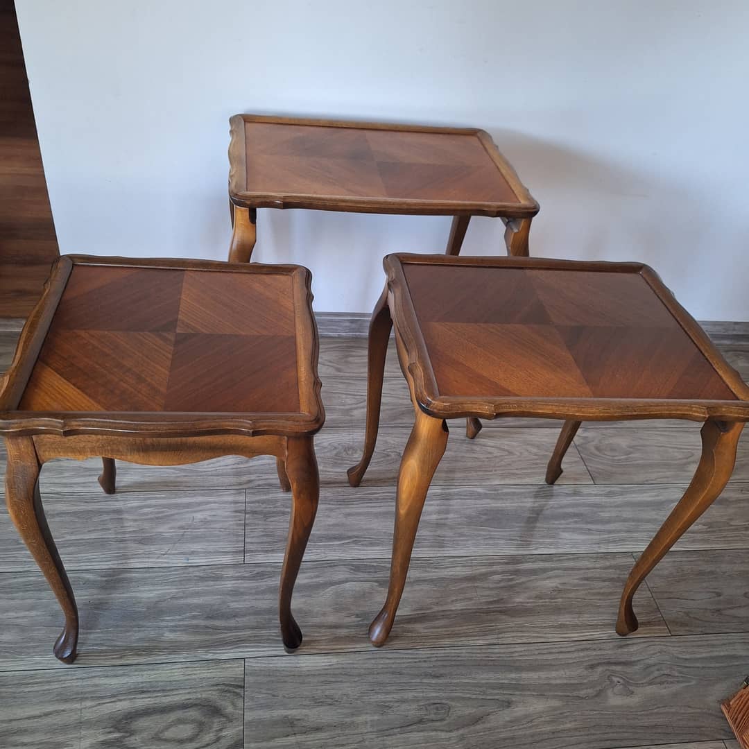 Trzy stoliki w stylu Ludwikowskim, wsuwane jeden w drugi . Wymiary największego 50/35/53 cm. Możliwy dowóz lub wysyłka. Cena za komplet 280 zł.