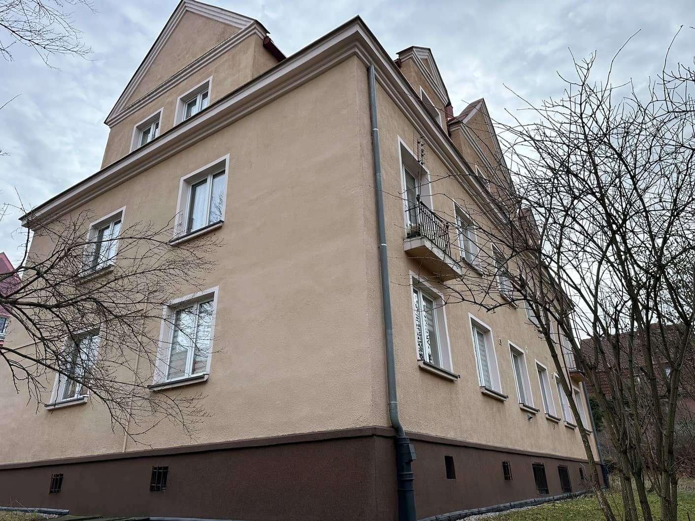 Piękny budynek po kapitalnym remoncie: nowy dach, nowa elewacja budynku, zadbana klatka schodowa.